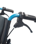 Silla de ruedas plegable con respaldo partido y reposabrazos abatible color azul