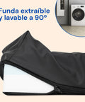 - Funda impermeable y transpirable: Mantiene la piel seca, favorece la higiene y se limpia fácilmente.