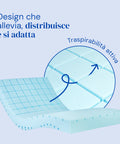 - DISEÑO EN CUADRÍCULA: El diseño superior del colchón incorpora cortes en forma de cuadrícula, que favorecen la transpiración y la adaptación por zonas. Mejora la comodidad en puntos de presión como hombros y caderas.